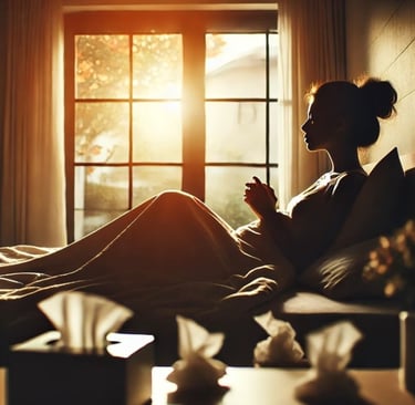 Totdat je de frustratie los kunt laten. Dan kun je - tussen de hoestaanvallen, hoofdpijn en rugpijn door - als het goed is genieten van even alleen met jezelf zijn. Voor sommigen is dat al een opgave op zich, maar ik vind het eigenlijk gewoon gezellig met mezelf (dat heeft ook wel wat tijd gekost)!